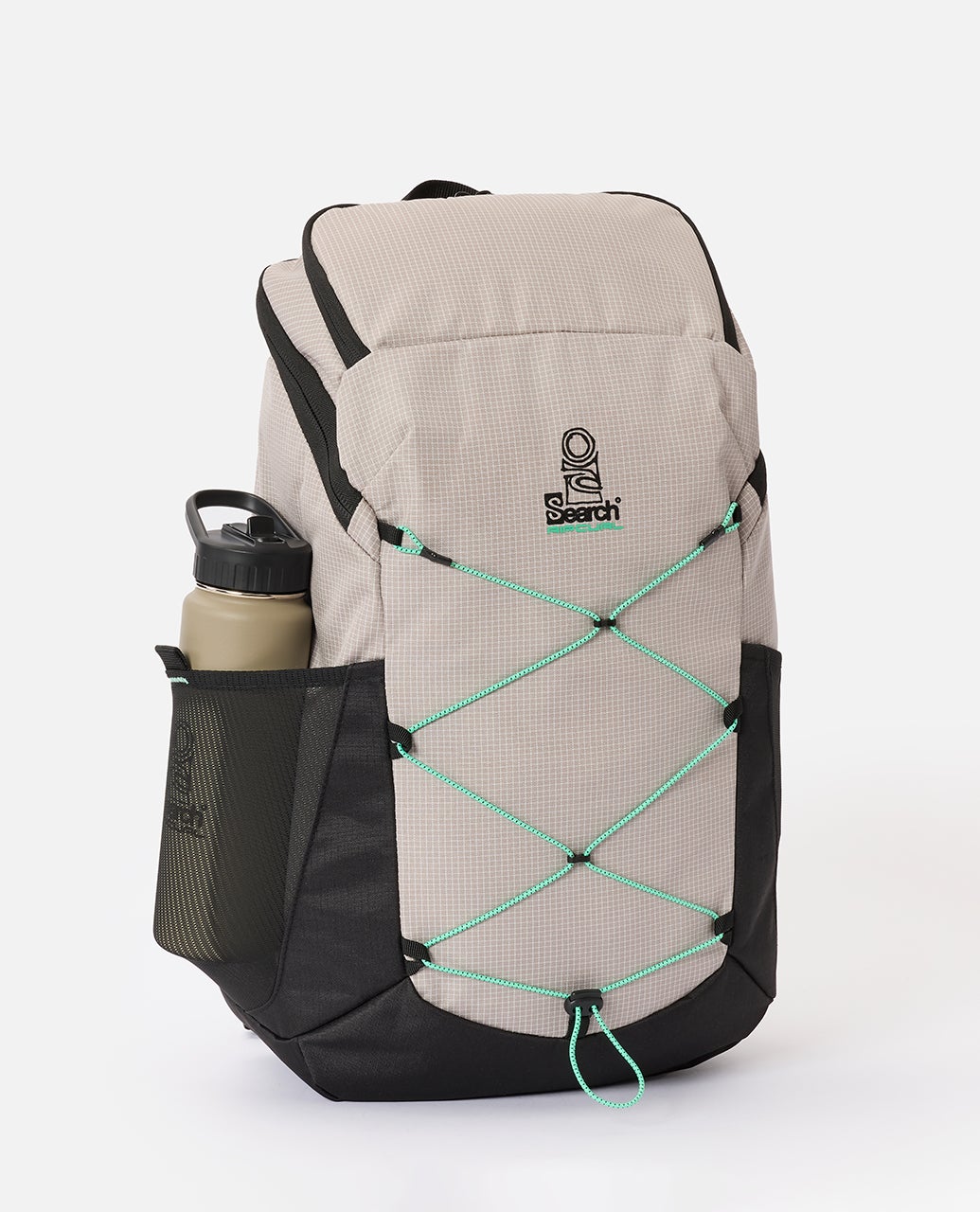 Search Overland 30L Backpack delivers everyday utility with laptop section, fleece-lined sunglass pocket, multiple organizer pockets, external bungee cord, and breathable straps for comfort.